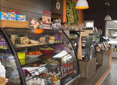 Throughout the day, we offer a fantastic selection of gourmet sandwiches, savoury quiche, sausage rolls, rustic handheld pizzas, soups, stews, hot lunchtimes specials and a luscious selection of sweet treats. We have a great selection of gluten-free and vegetarian options too.